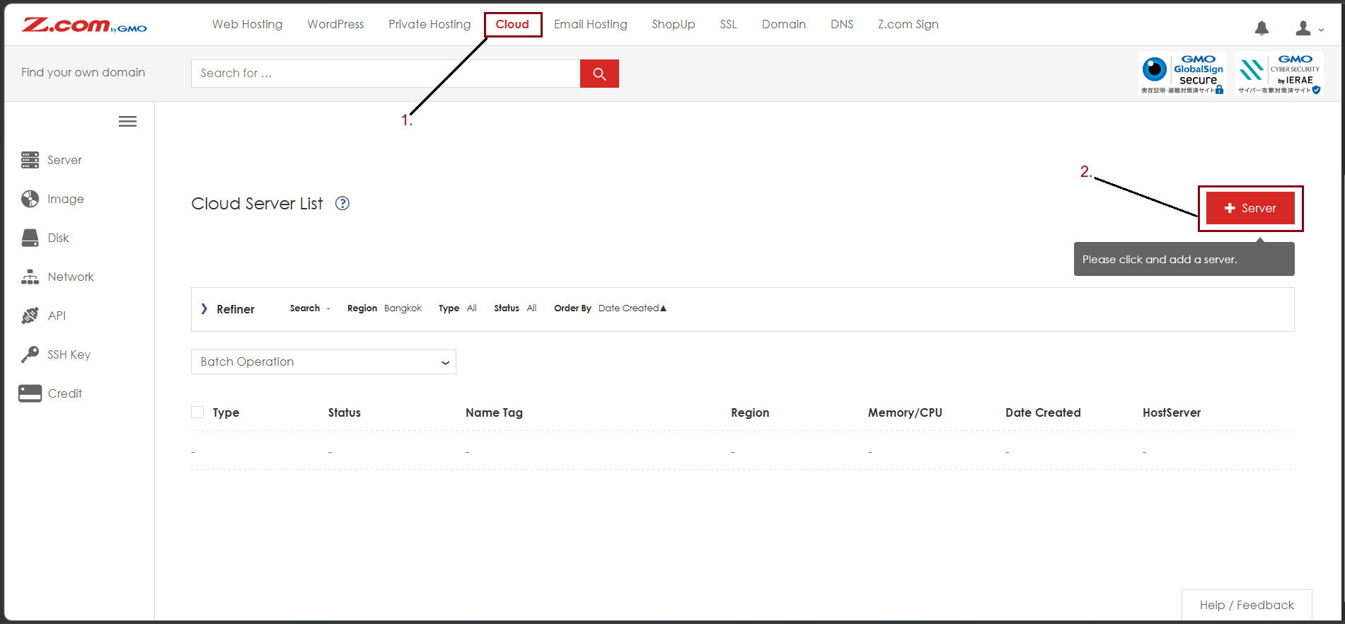 Step1. Login to z.com account, https://cloud.z.com/mm/signin/