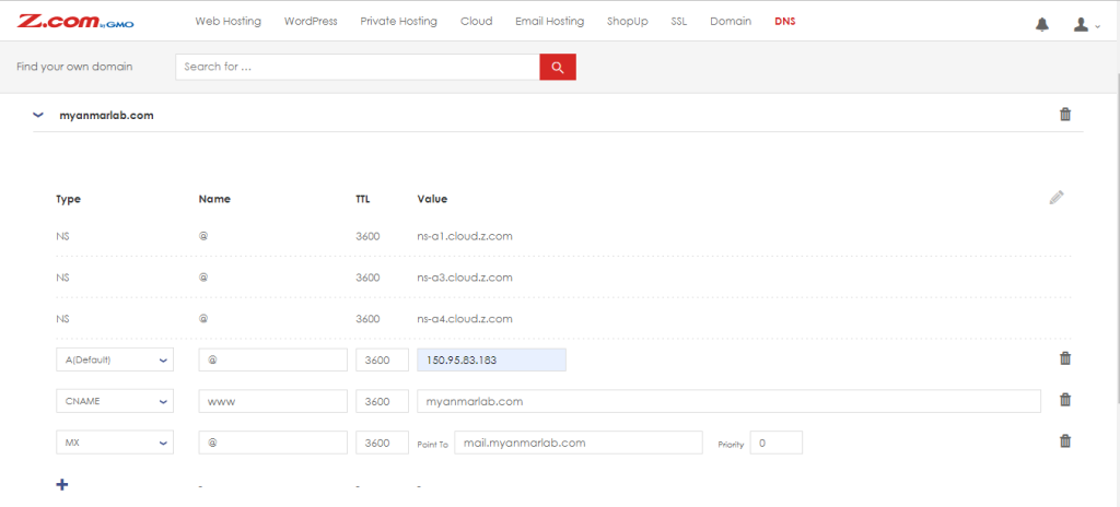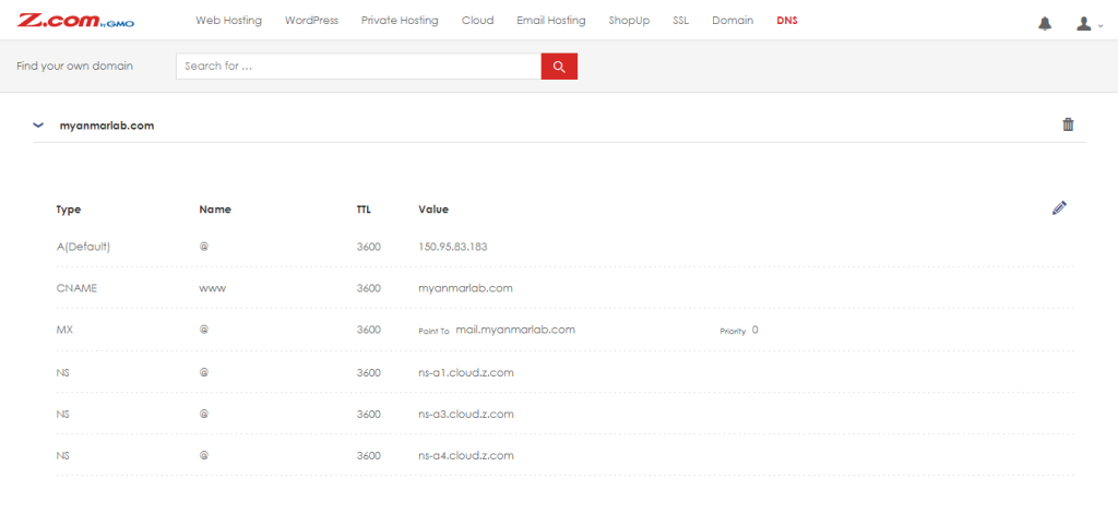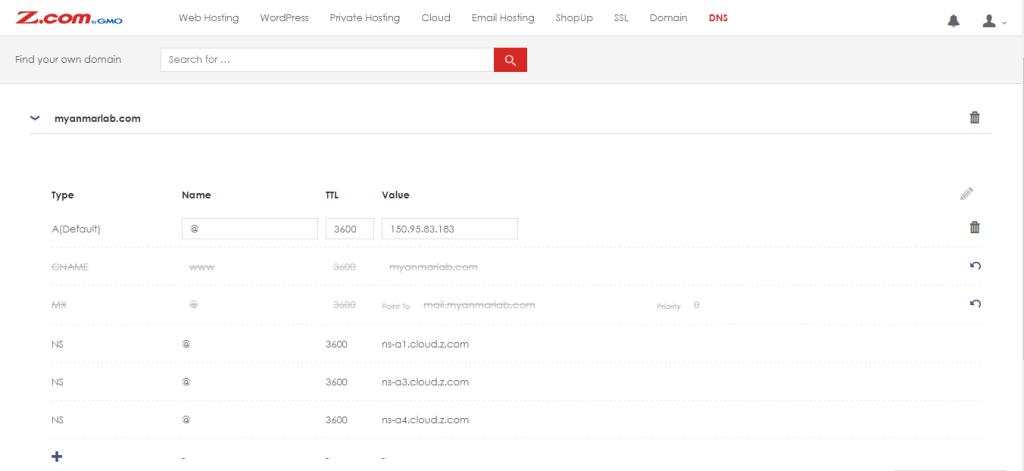 Step5. Click the “Delete” button that you want to delete the DNS record