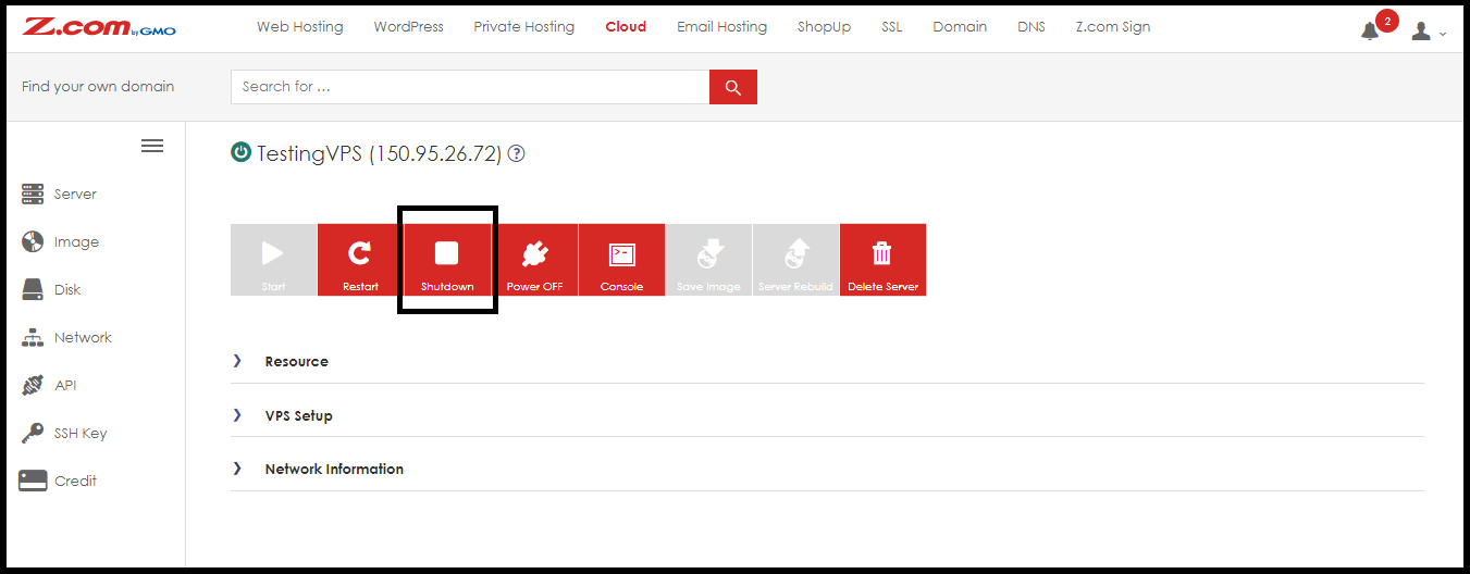 Step4. It would help if you shut down the CloudVPS Server to delete the Server