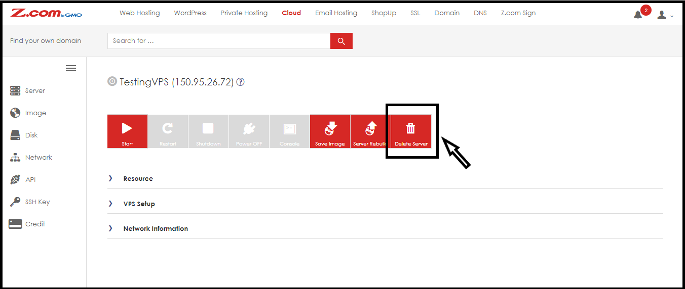 After the server is shut down completed, you can delete the Cloud VPS server.