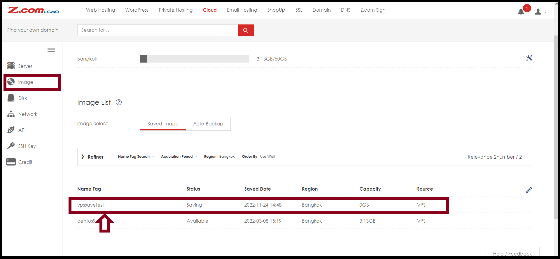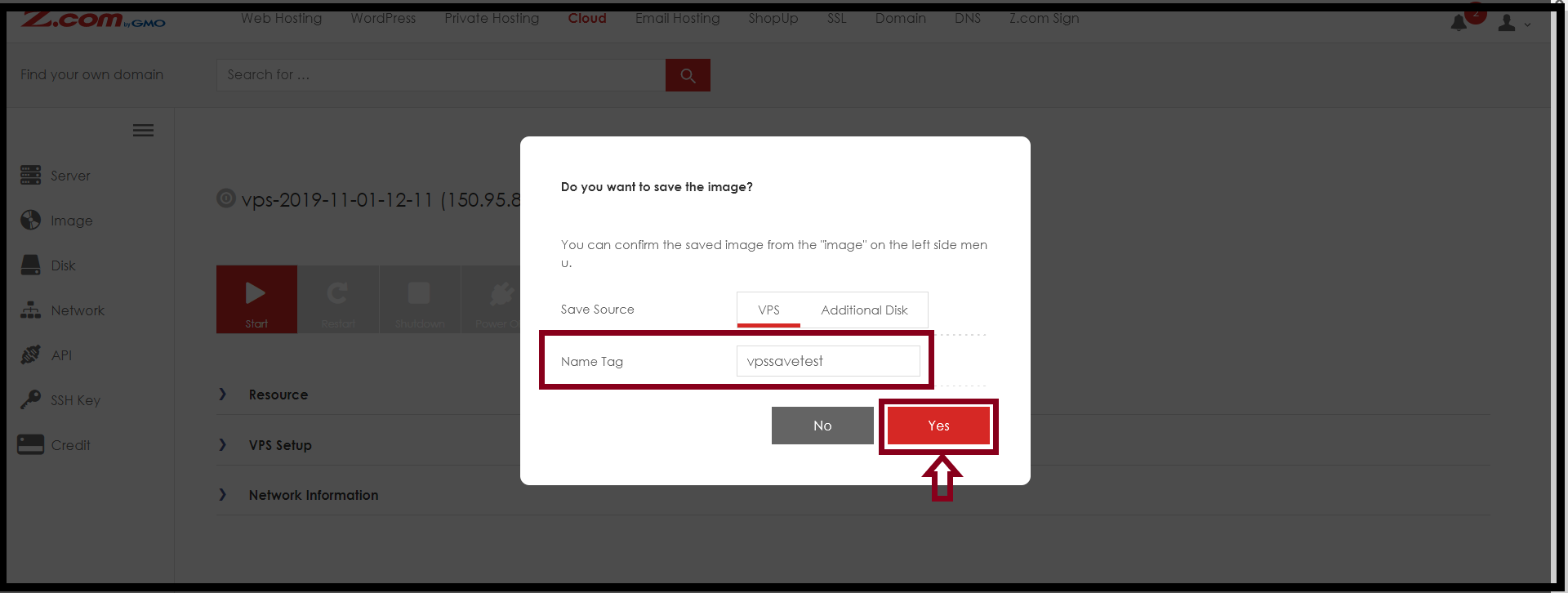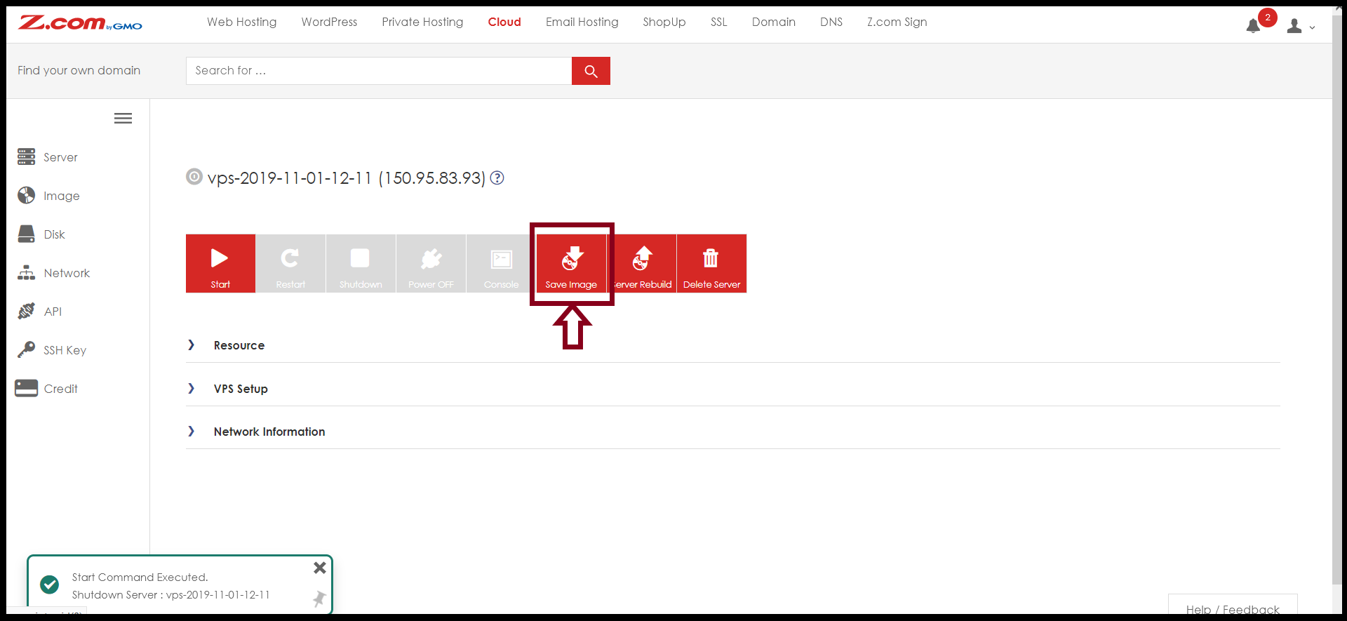 The Save Image Function is a kind of Server clone function of CloudVPS. Let’s start to save the server’s image as follows.