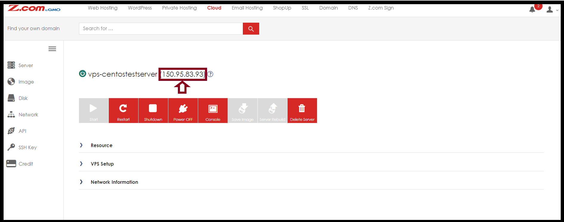Step(2)- Click the “Cloud” Tab and Select your Cloud VPS Server Under the Name Tag