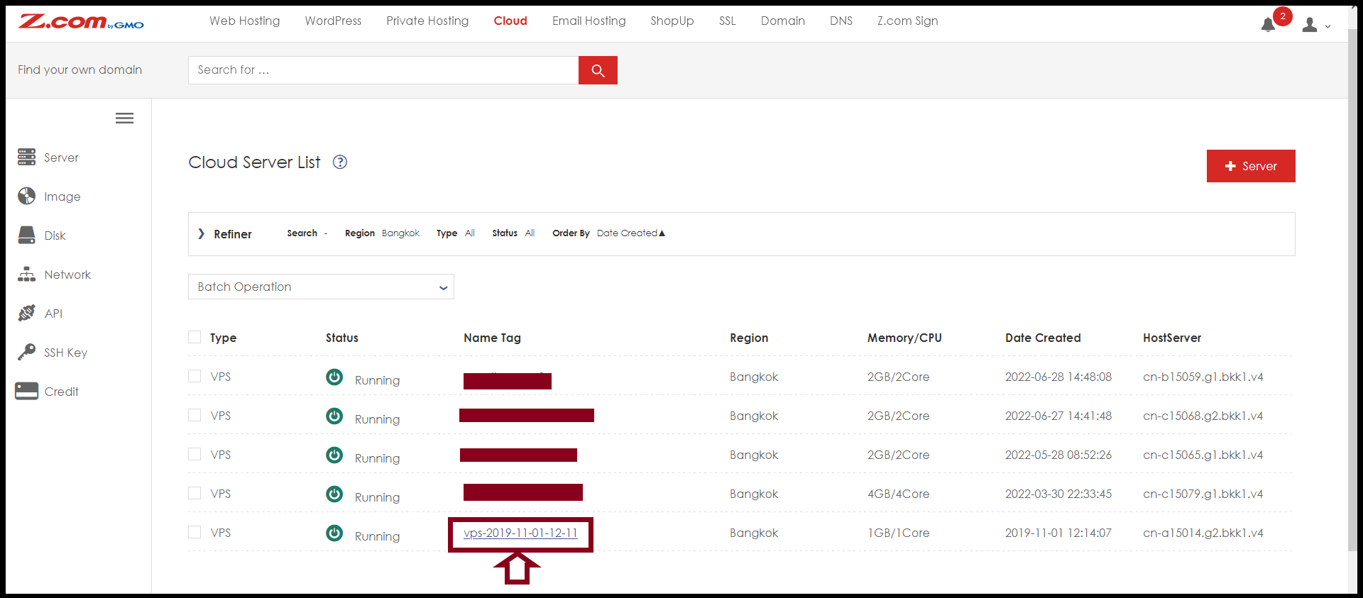 Step(2). Click the “Cloud” Tab and Select your CloudVPS Server Under the Name Tag