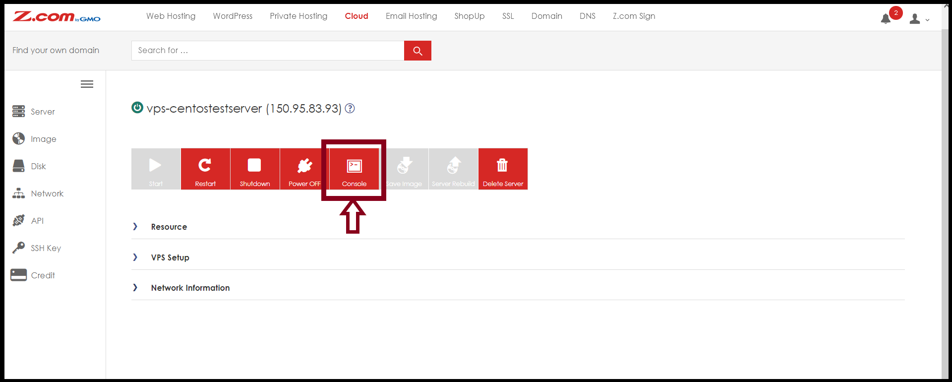 How to Access the Console of CloudVPS (Linux Server) from My Z.com?