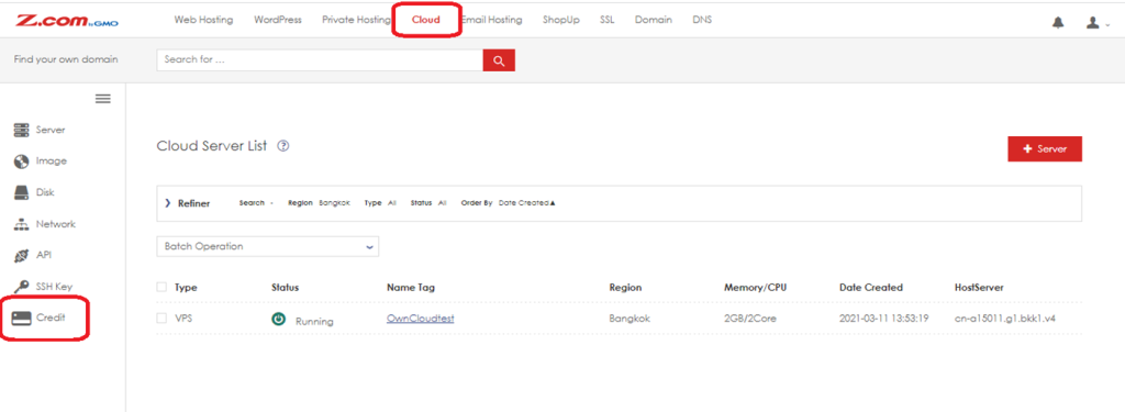 Step 2. Please click on the top menu “Cloud” and click “Credit” on the left-hand side.
