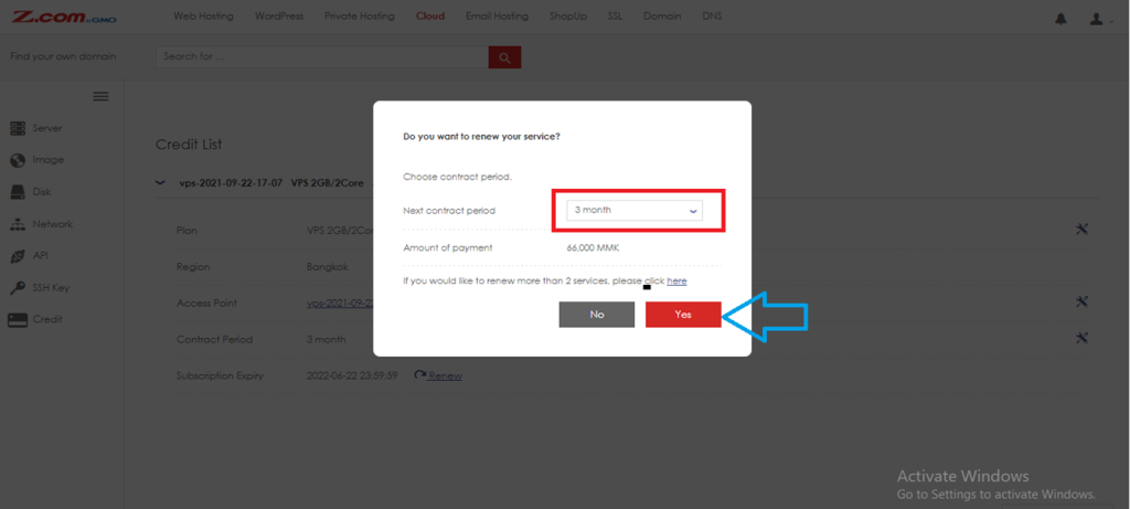 Step 4 . Select the desired Contract Period and click “Yes”.