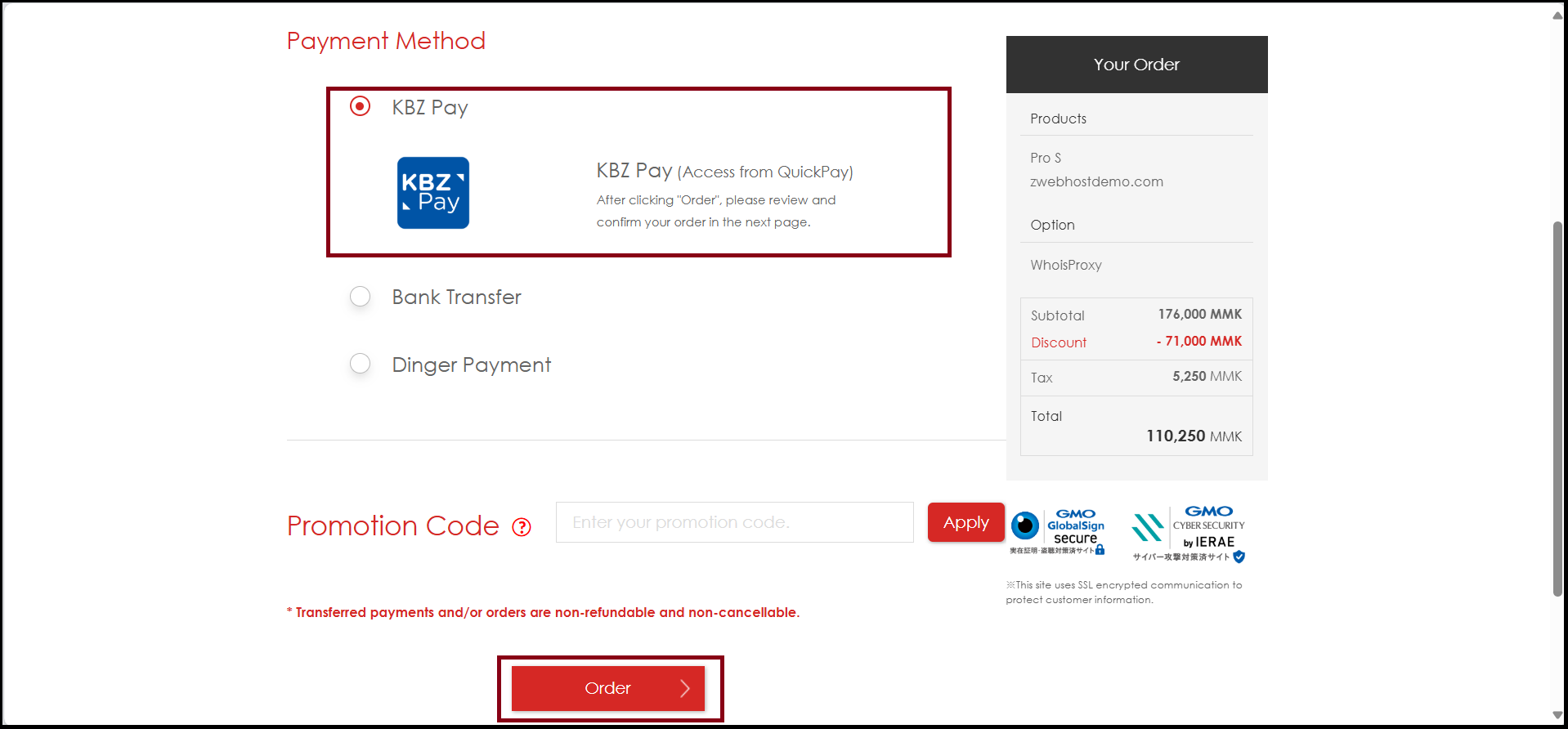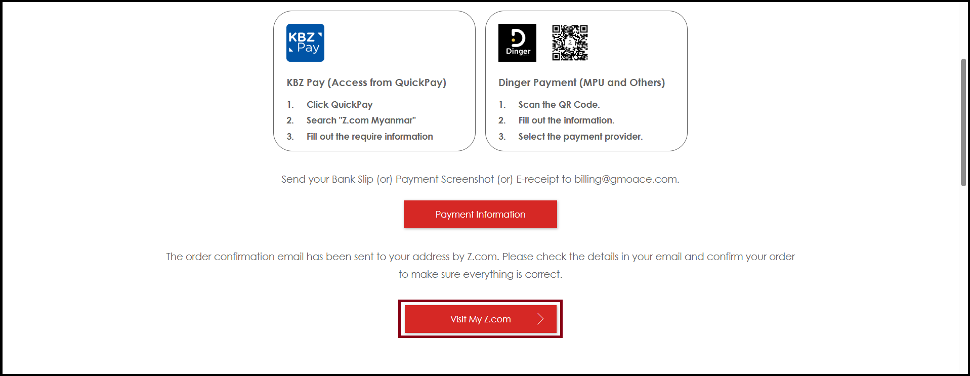 - KBZ Pay : you can make the payment via KBZ Pay account (QuickPay)
