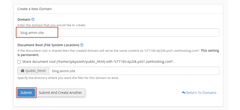 Step 6. Add your subdomain ( Eg : blog.aimm.site, news.aimm.site ).After that click a " Submit " button.