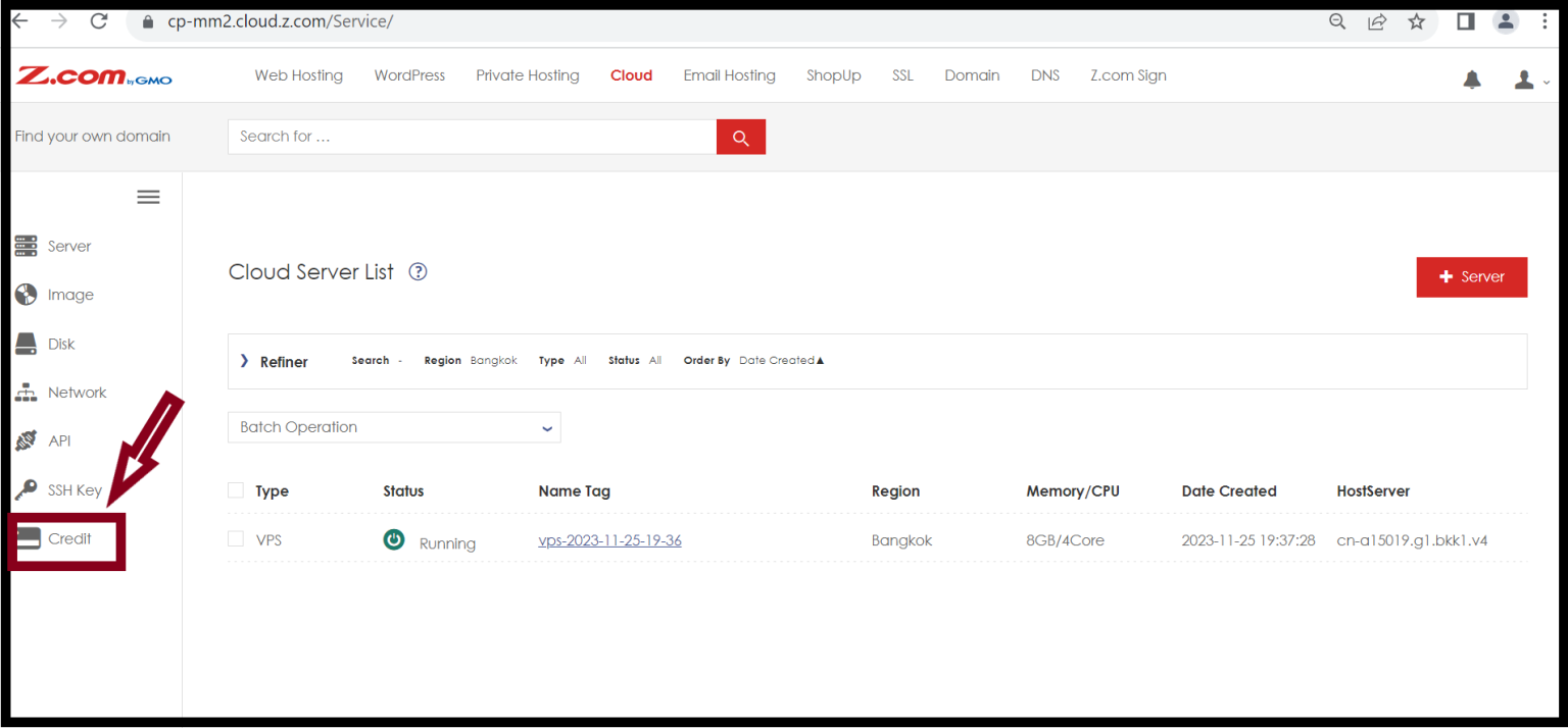 Step1. Login to the Z.com and go to the Cloud.