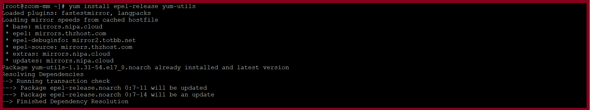 [root@zcom-mm ~]# yum install epel-release yum-utils