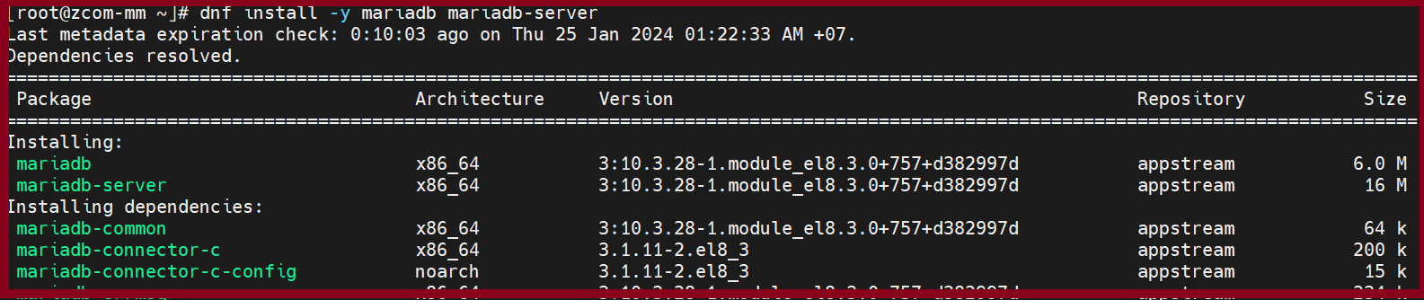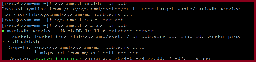 [root@zcom-mm ~] # dnf install -y mariadb mariadb-server