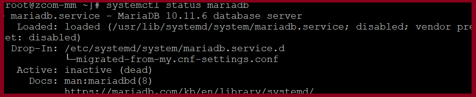 [root@zcom-mm ~] # systemctl stautus mariadb