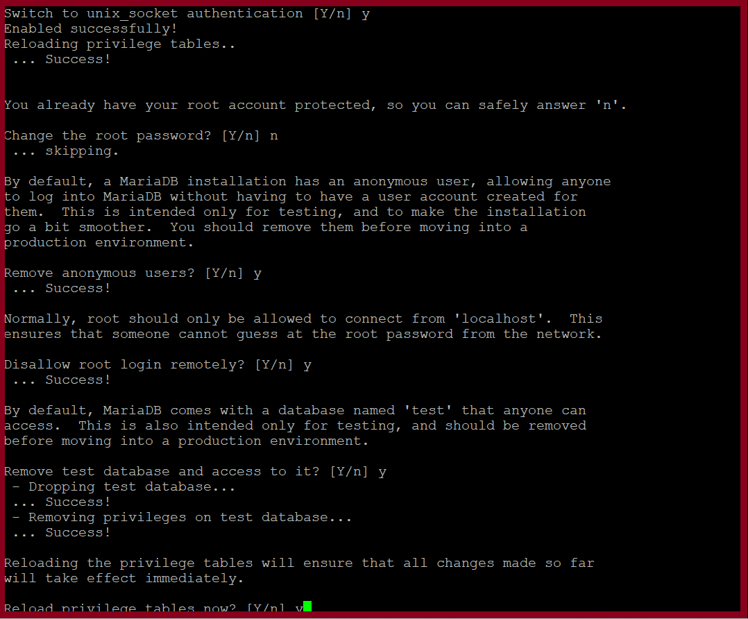 Step6.We need to secure your MariaDB installation using passwords and do some other changes. Please check the below instructions.