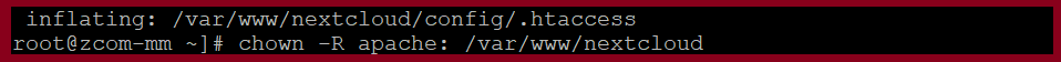 [root@zcom-mm ~] # chown -R apache: /var/www/nextcloud