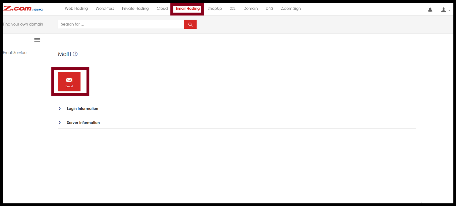 Step1. Login to the Z.com and Click on the Email Hosting.