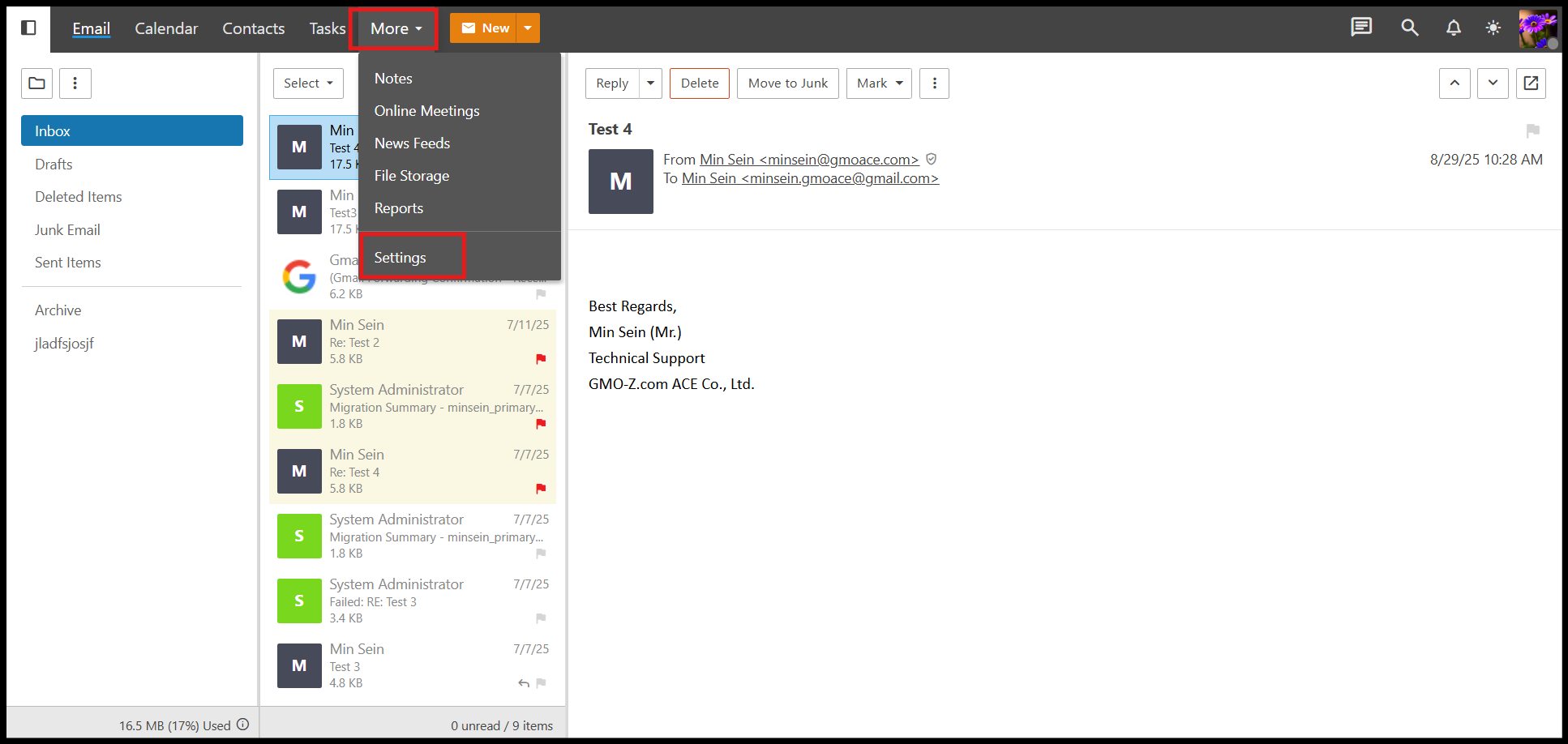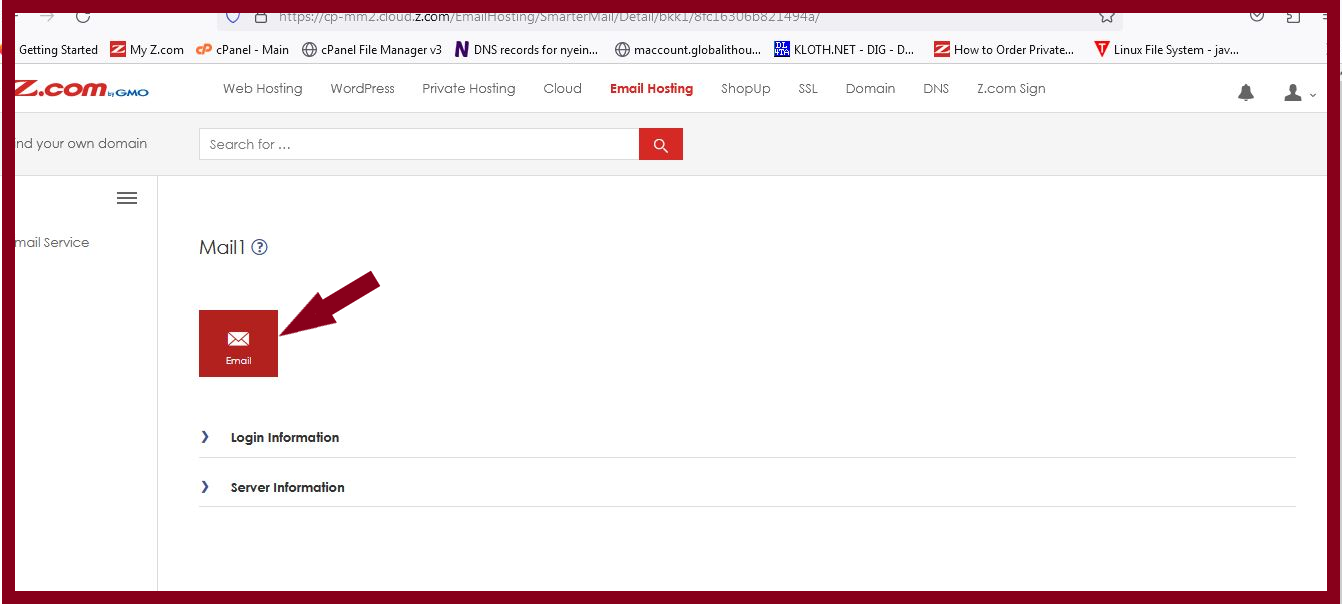 2. And then click the Email icon or URL link from Login information to log in to your mail server.