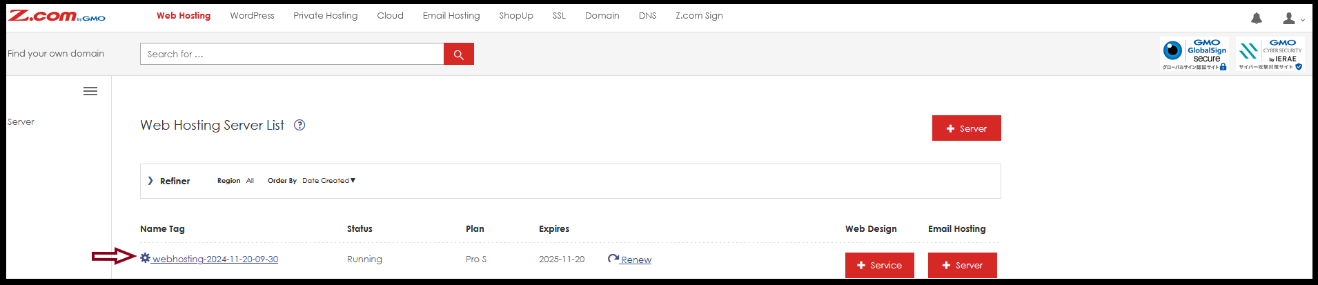 Step 6. Now you can try SSH connection to the server via " PuTTY ” app. For the server information, please check the information in your Z.com account.