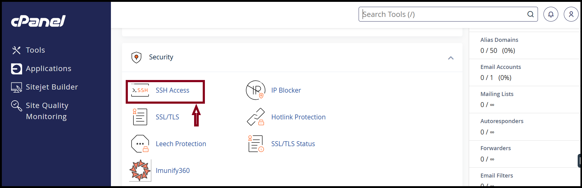 Step 3.Click “ SSH Access ” Under Security Title.