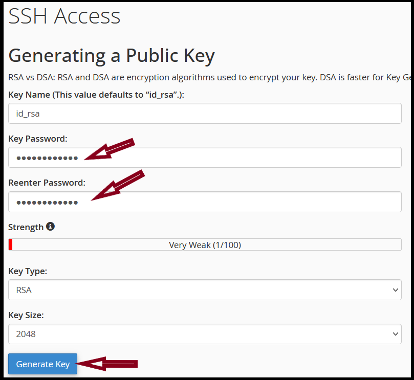 - Password - Passphrase key pwd