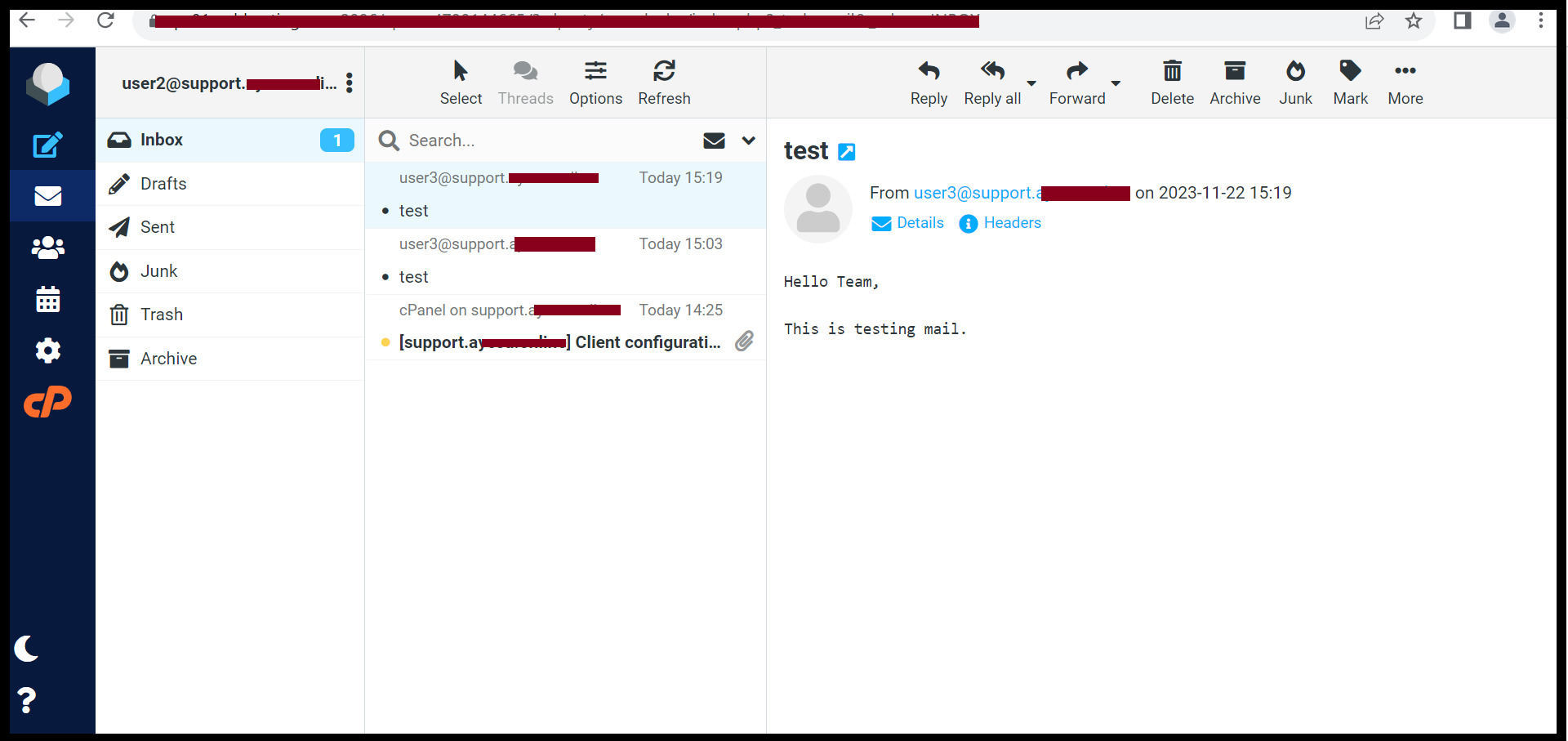 Step 7. The sending mail from user3 will go to both user1 and user2 .