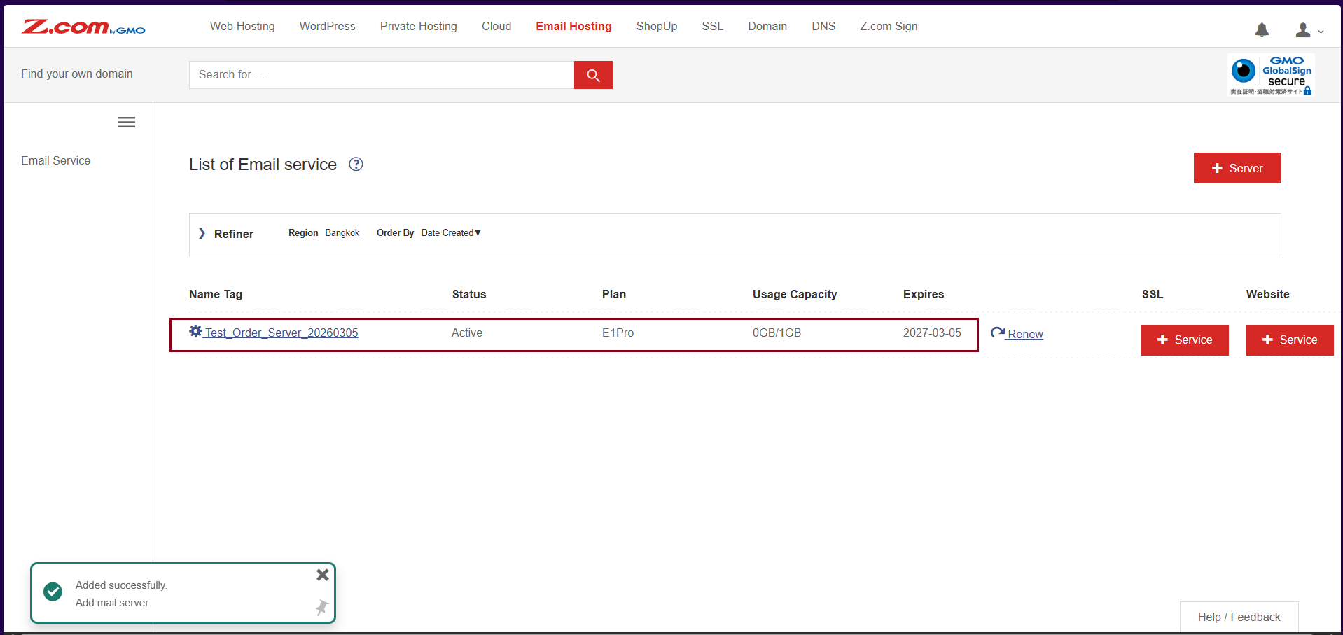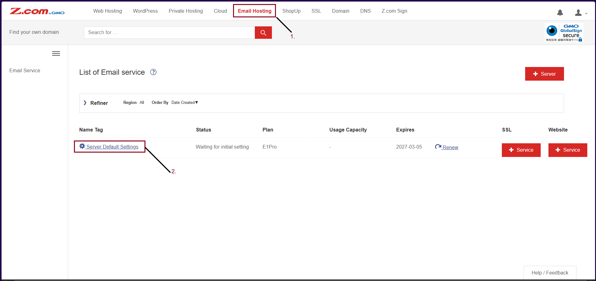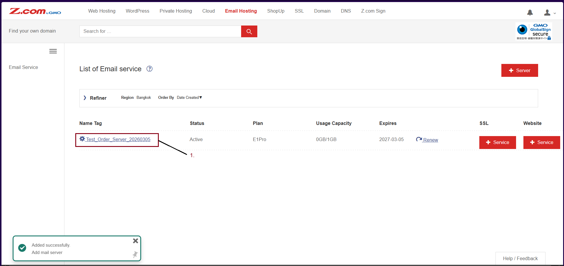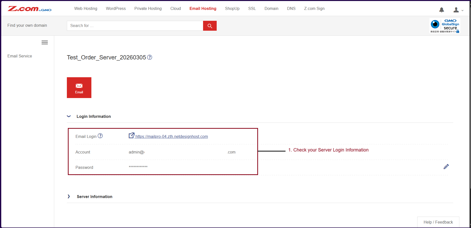 Step2. Click the “Email Hosting” Menu to check ordering server