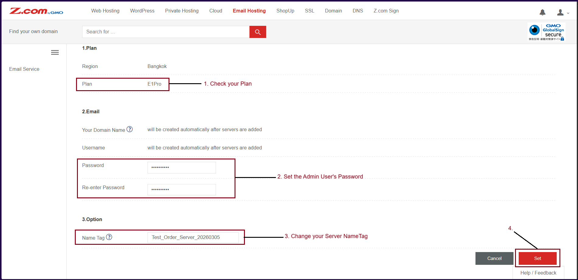 Step4. Enter the “Password” and you can change the “Name Tag” of email hosting also.