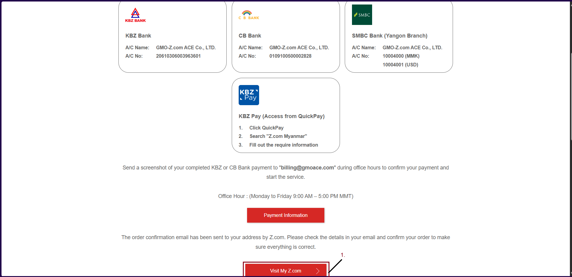 To go back Z.com Account, please click "Visit My Z.com".