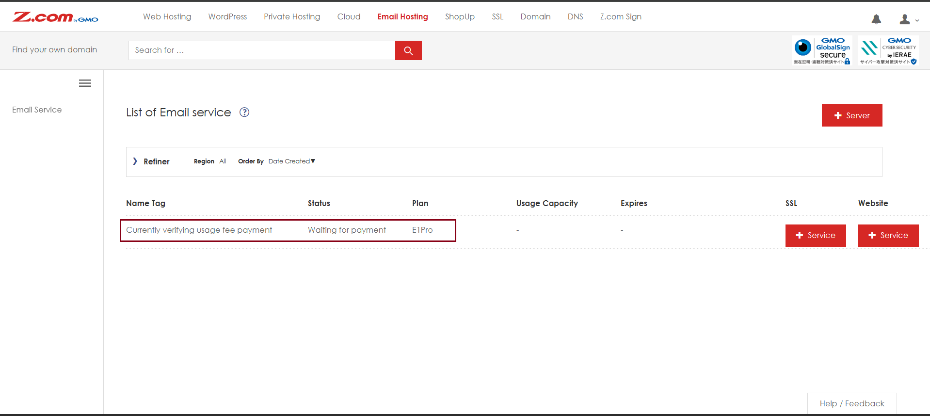 2. Check your ordering services (For example: Domain Name and Email Server Type)