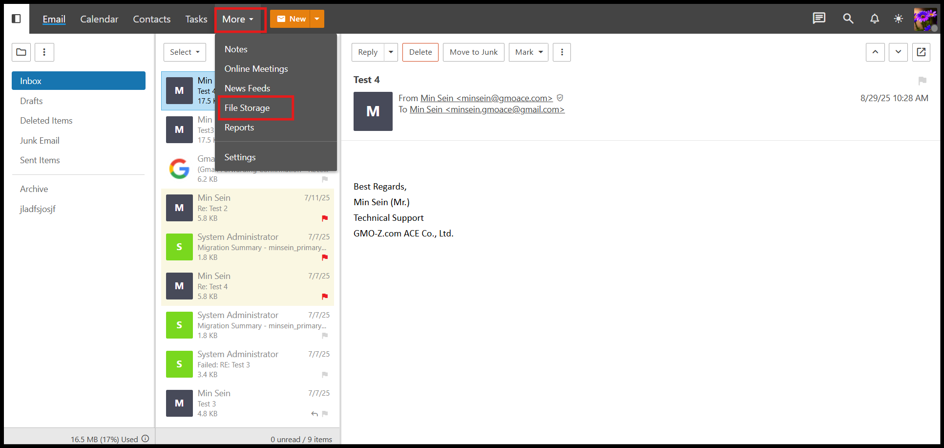We can use the “File Storage” function to store the files on the Email account. And then, we generate the public link of the files and share them with your email’s clients.