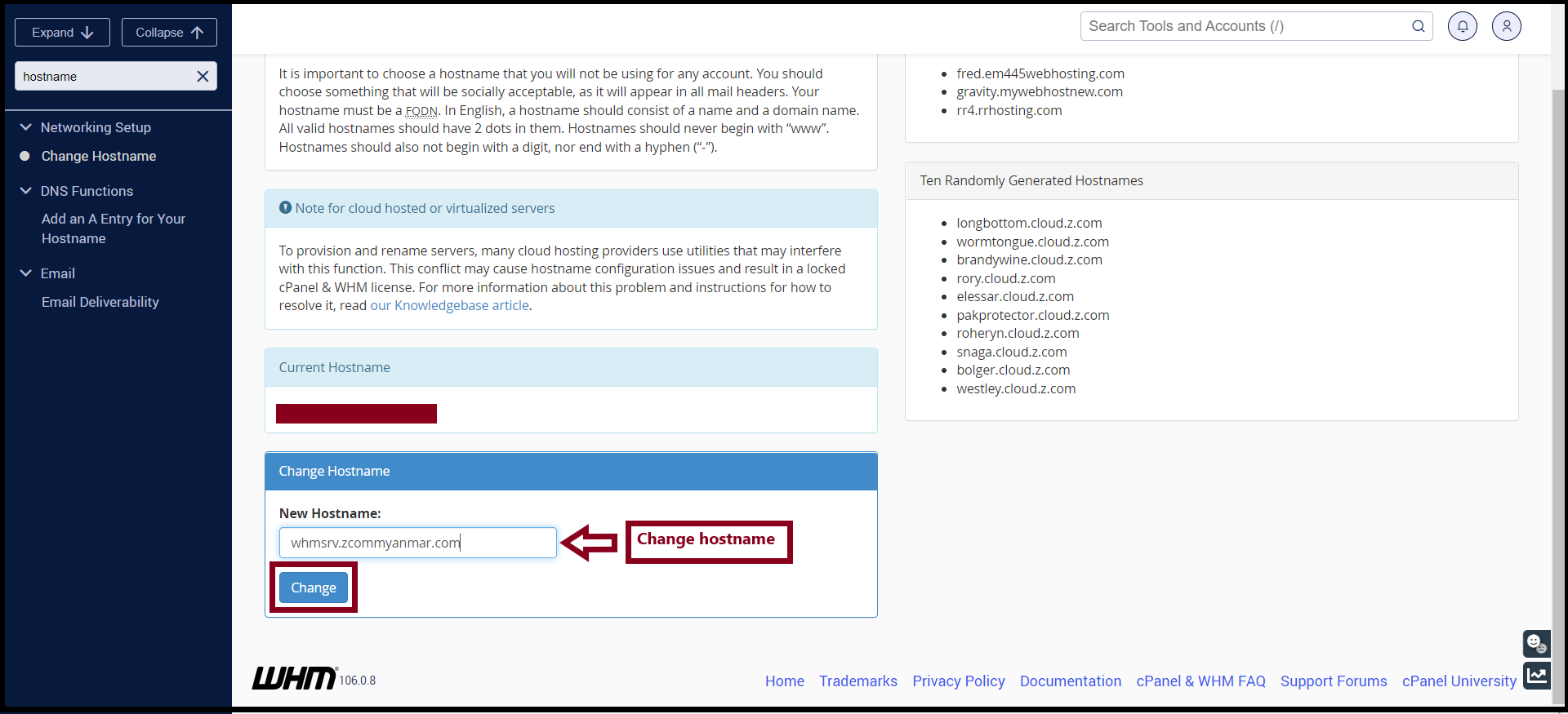 Step3. Please Enter “New Hostname” and then, click “Change“