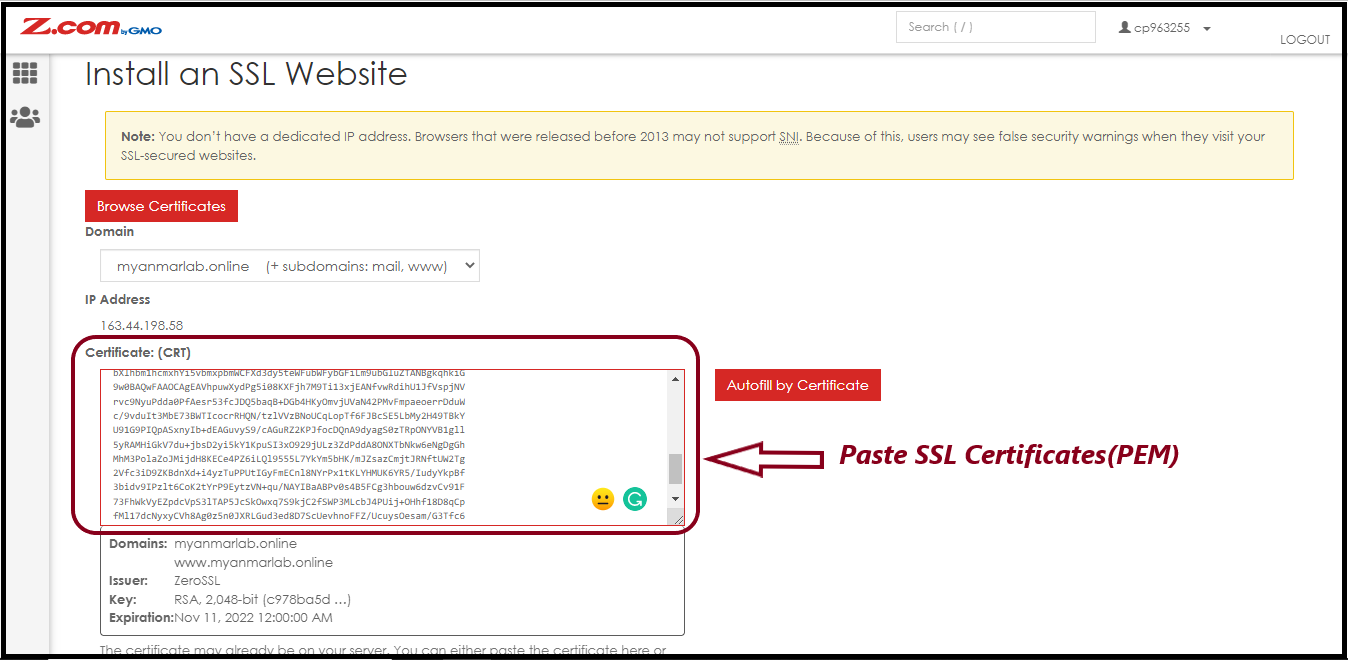 And then Paste “Private Key(KEY)” and “CA BUNDLE” as follows