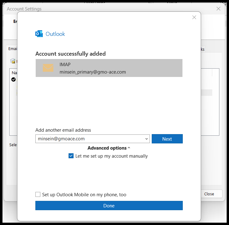 When "Account successfully added" shows, the setup is completed. Click "Done".