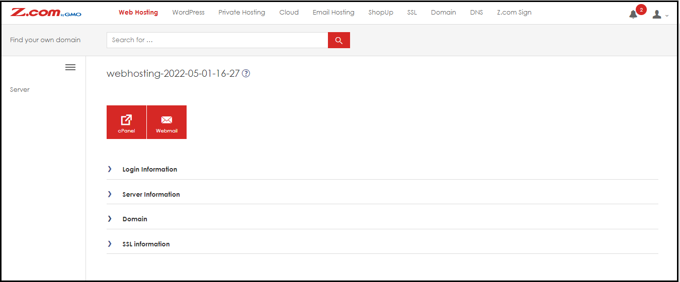 Step3. Select your "Web Hosting" server Under Web Hosting Server List