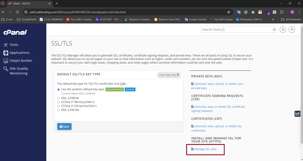Step4: Click "Manage SSL Sites".
