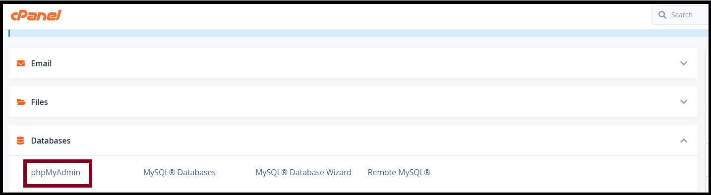 Step4. Go to "PHPMyAdmin"Under the Databases Menu
