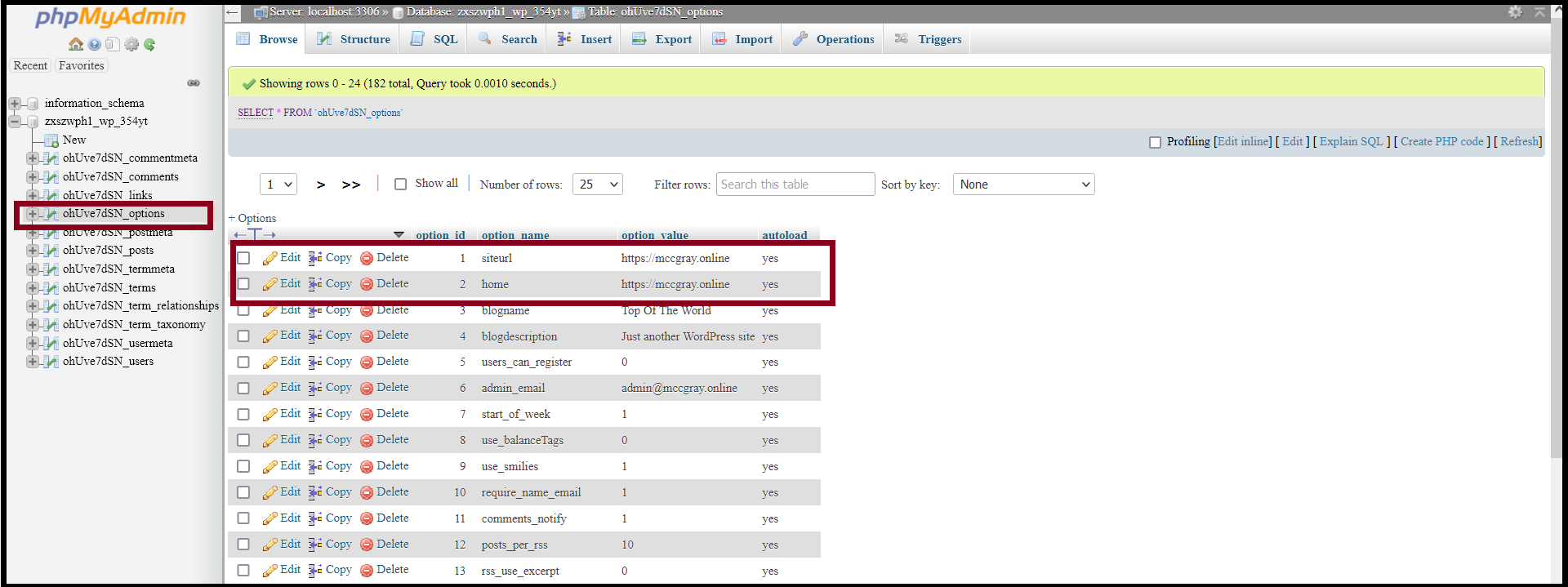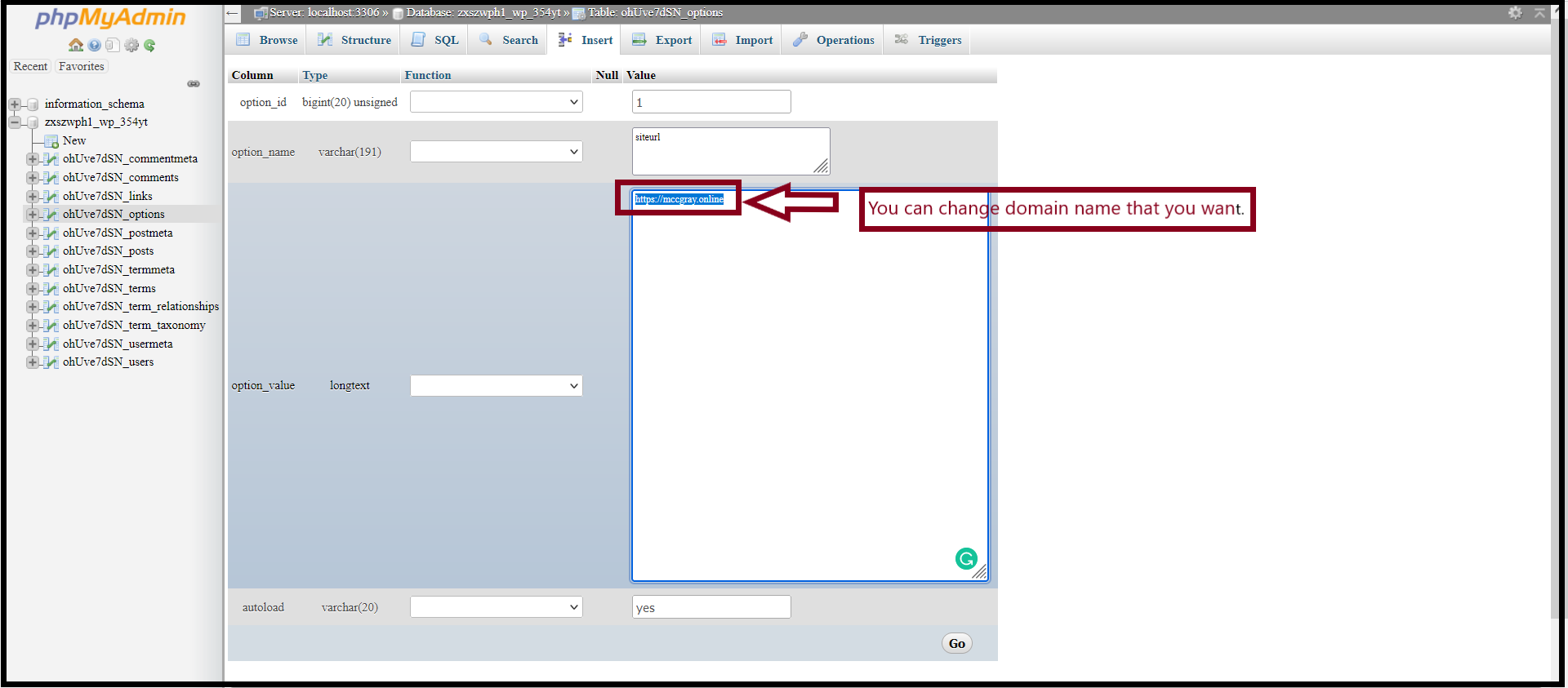 How to Change the Domain Name on WordPress Pro from PHPMyAdmin?