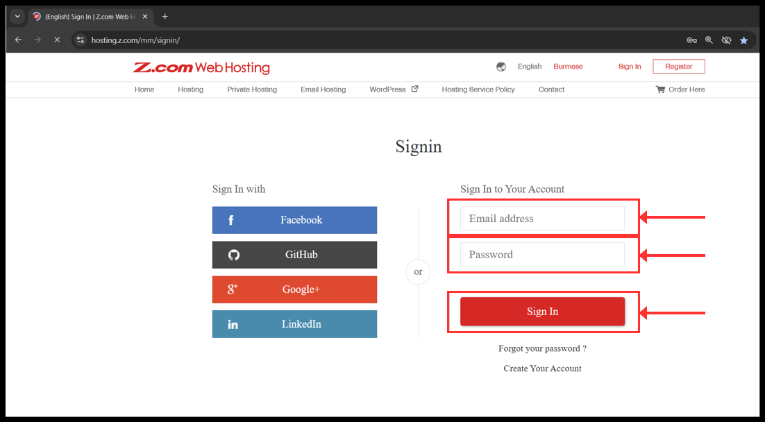 1. Login to your z.com account with registered email address.