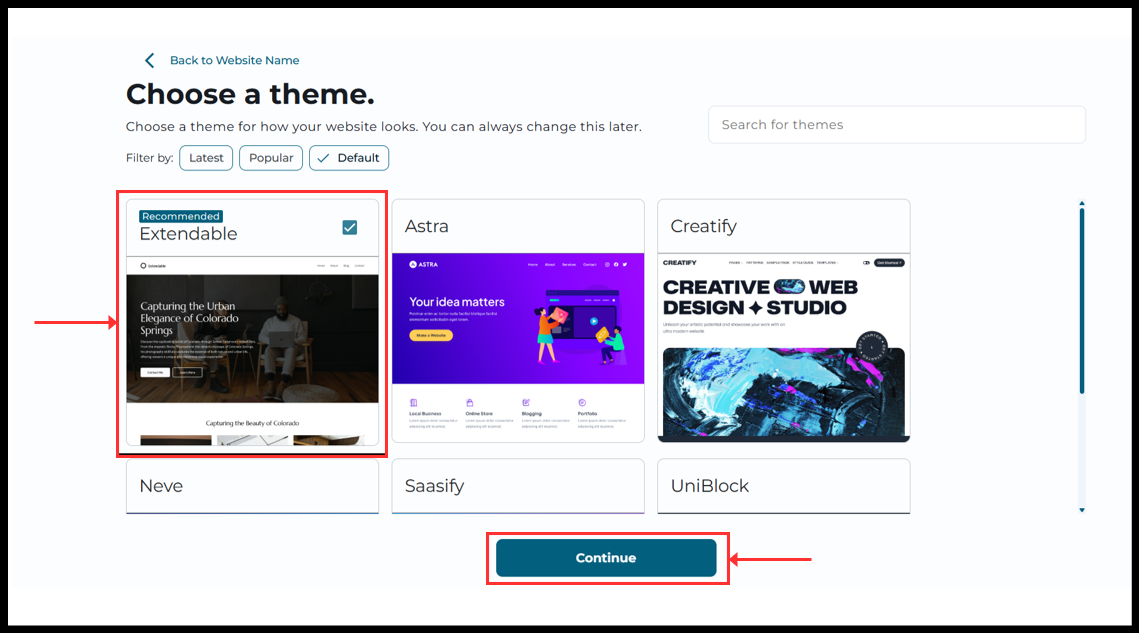 8. Choose a theme you prefer and click “Continue”.