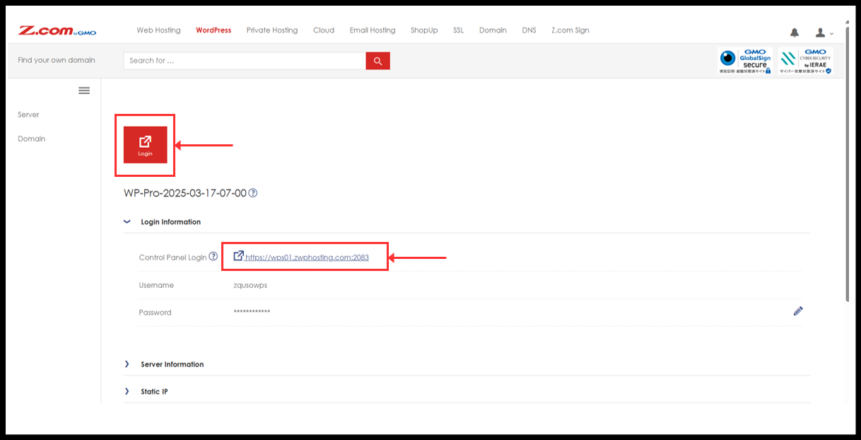 4. You can click Login red button to directly or can be manually visit the link from Login Information to get into Wordpress Squared Panel.