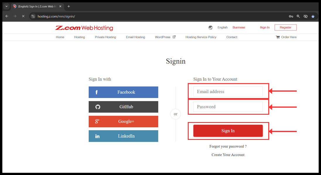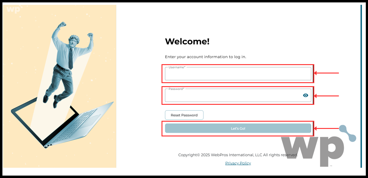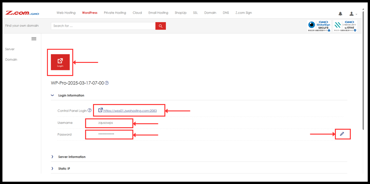 To change from WP Squared panel, click “Login” red button to directly login or can be manually log in from Login information.