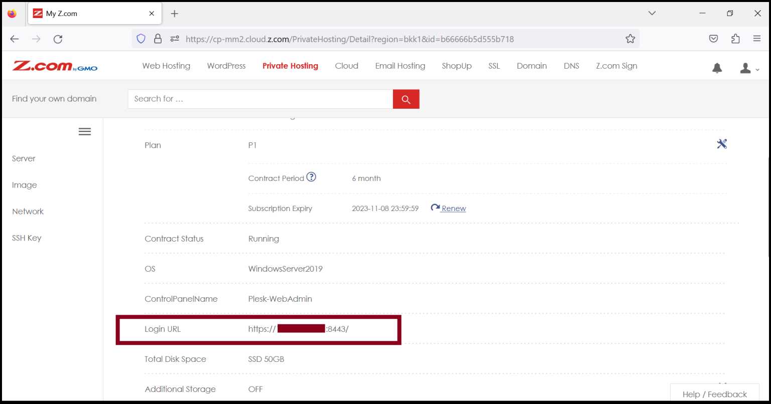 Step5. The Plesk Panel can login with the Login URL as follows.