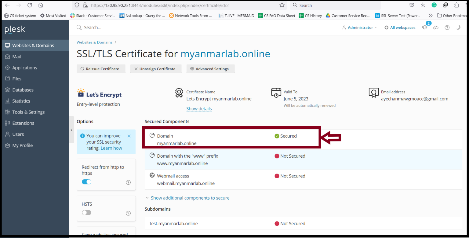 Step4. After waiting for a moment, the Let’s Encrypt SSL was activated.