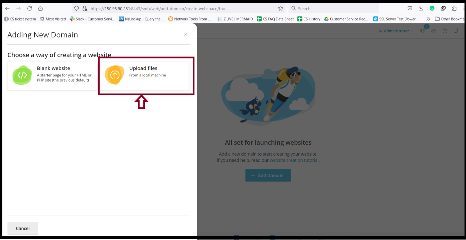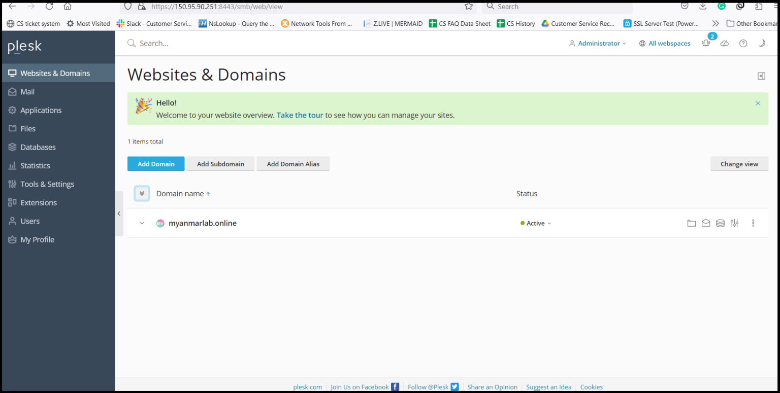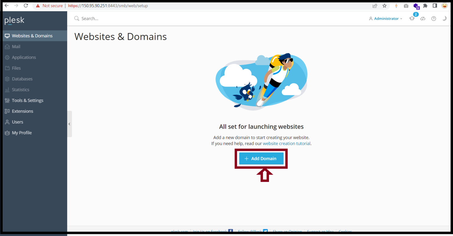 Step1. Login to the Plesk Server, https://150.95.xx.xx:8443/