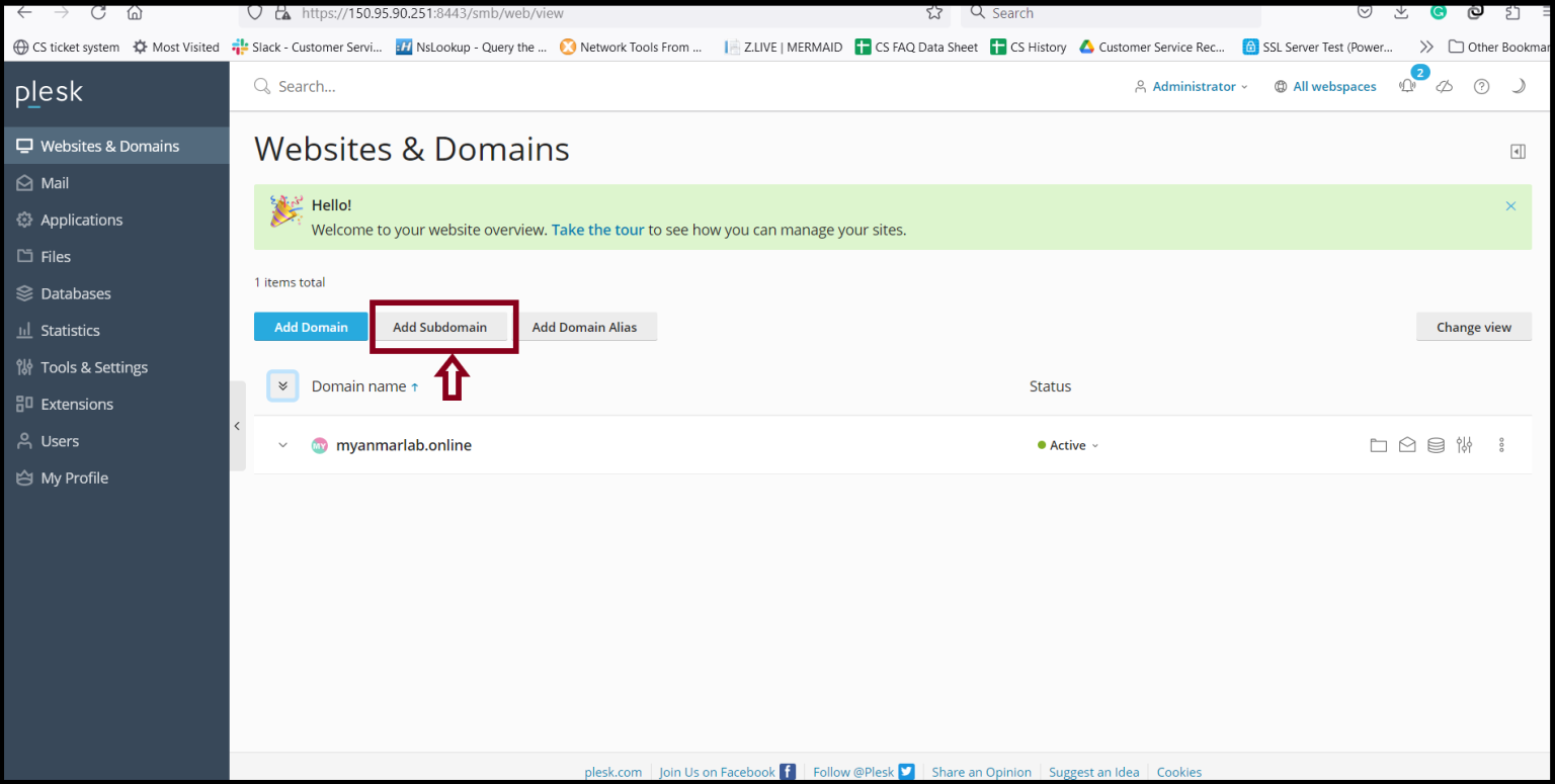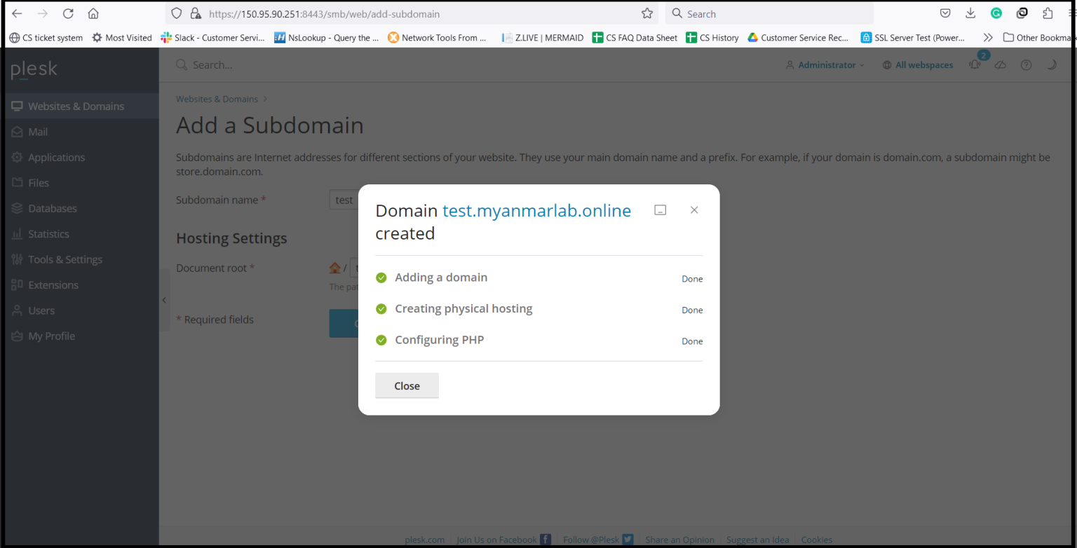 How to add a Domain and Subdomain in Plesk Server?