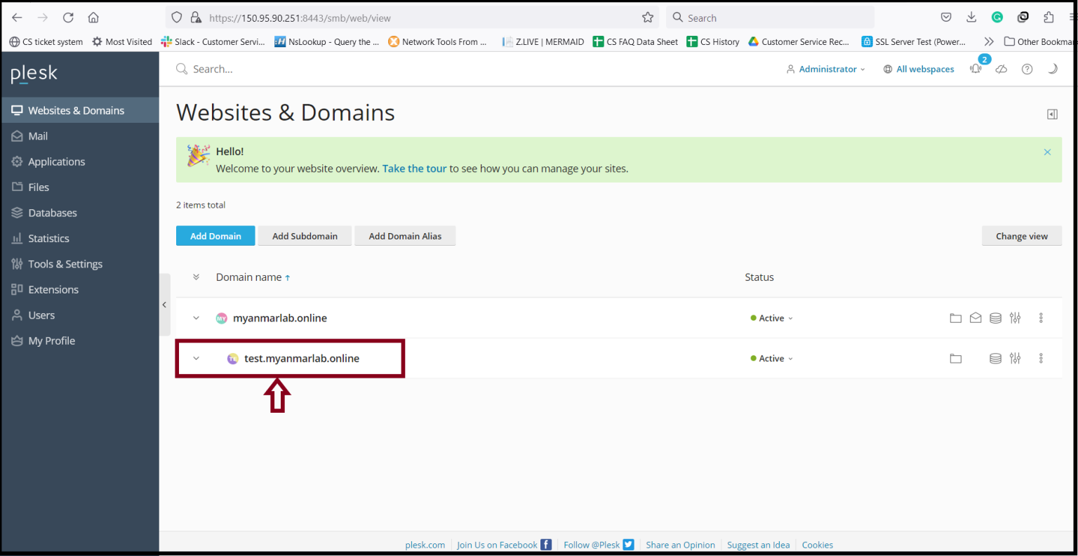 Step5. Now the domain is added to the server.