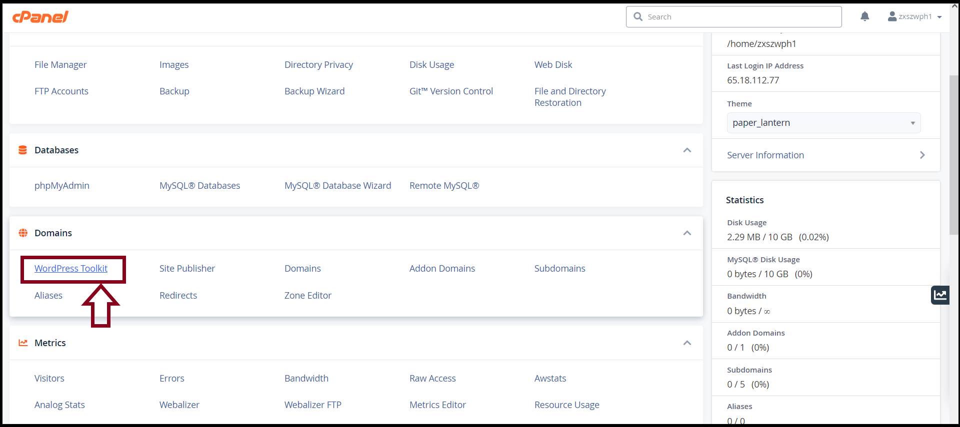 Step5. Select “WordPress Toolkit” Under “Domains” Menu