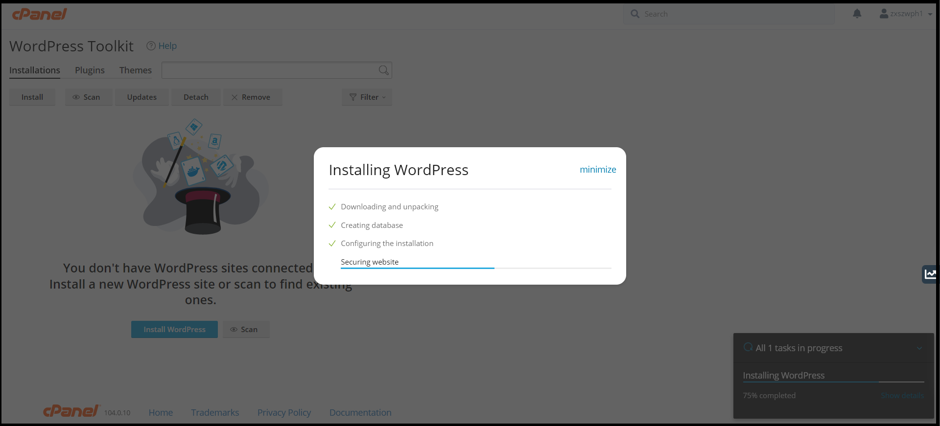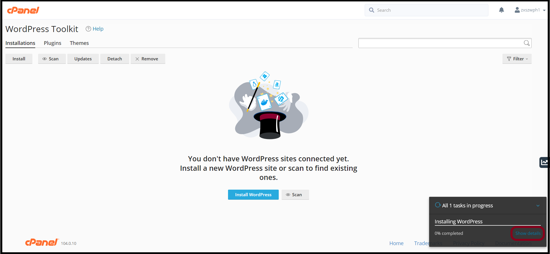 After that, The WordPress installation process is in progress, and click “Show Details” to check the WordPress Installation.