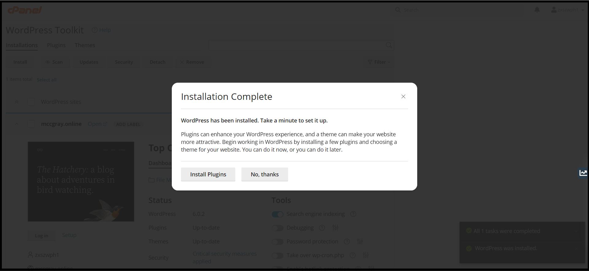 Finally, The WordPress Installation was completed, and Can “Install Plugins” that you prefer