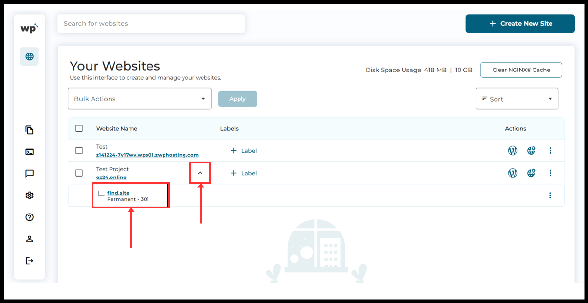 7. Now the redirect domain has been added and can be check by clicking down pointing (drop down) icon which exist beside of domain name.