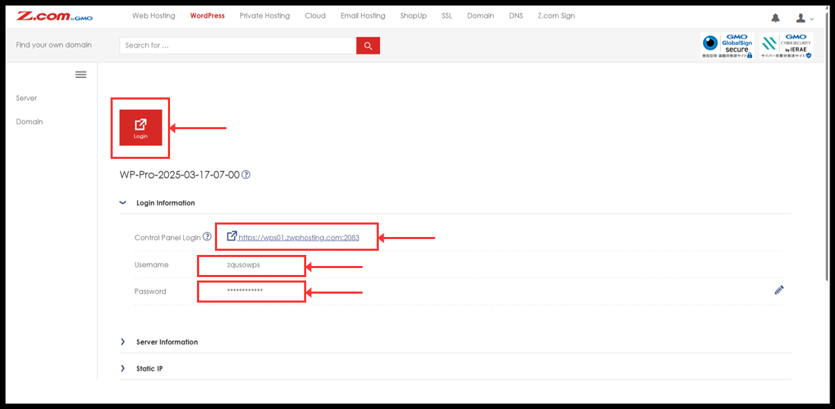 4. You can click “Login” red button to directly login or can be manually log in from Login information.